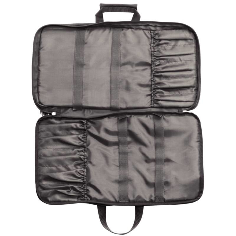 Mallette double face avec deux compartiments pouvant contenir 34 couteaux et autres accessoires. Compartiment séparé pour les livres et les stylos. Contenu non fourni.