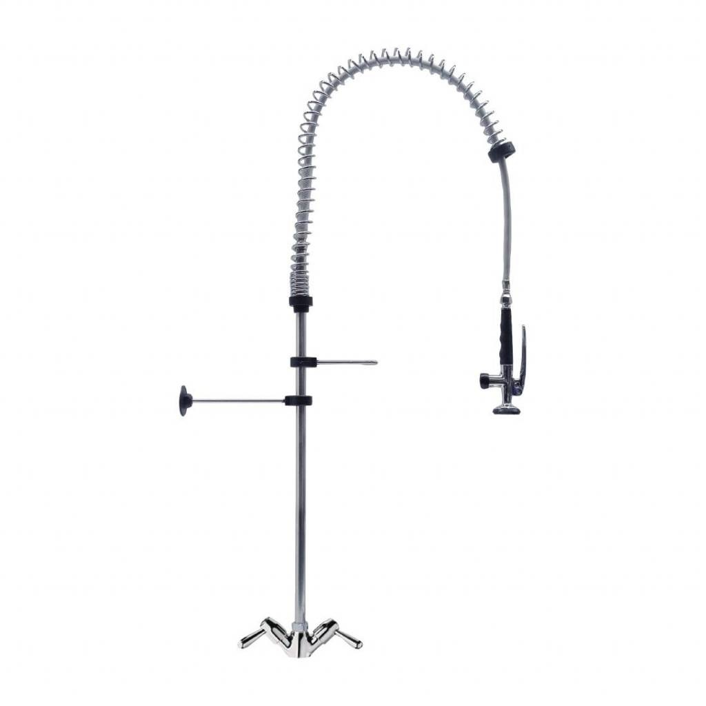 Combiné de prélavage professionnel grand modèle avec puisage monotrou pour une utilisation quotidienne. Acier inoxydable avec support mural réglable. Avec cartouches en céramique de haute qualité et clapets anti-retour.