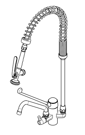 Combiné de prélavage petit modèle monotrou avec col de cygne et commande mains libres pour une utilisation régulière. Acier inoxydable avec support mural réglable. Avec cartouches en céramique de haute qualité et clapets anti-retour. Hauteur totale 700mm.