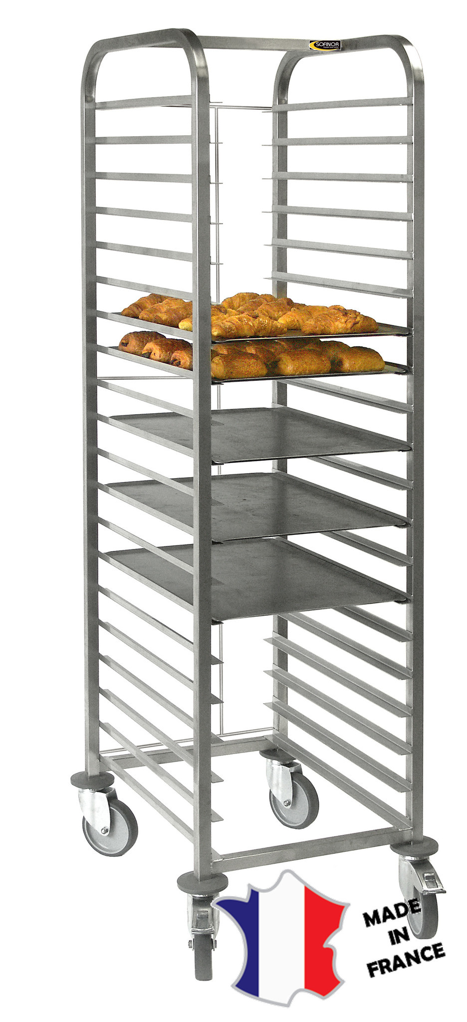 Echelle pâtissière pour plaques 40X60, entrée 40. DIM 465x612 ht 1775mm. 20 paires de glissières soudées en tôle inox AISI 304L, ép 15/10ème.