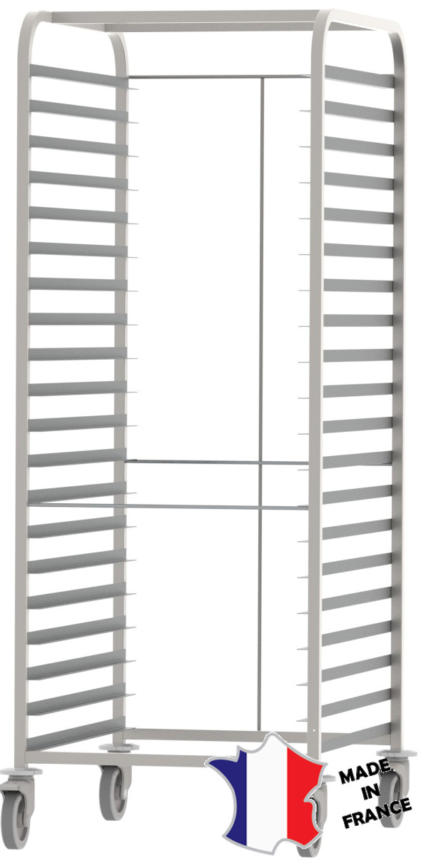 Echelle pâtissière pour plaques 60X80, entrée 60. DIM 662x812 ht 1775mm. 20 paires de glissières soudées en tôle inox AISI 304L, ép 15/10ème. Armature cintrée en tube inox AISI 304L de 25x25 soudé.