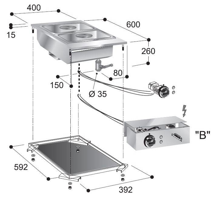 Element de Bain-Marie | +30/+90°C | 2 kW | 400x600x(H)260mm