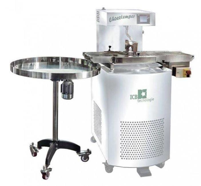 - Troisième section: zone de finition. Une fois recouverts de chocolat, les produits tombent à l’intérieur du plateau tournant rempli de poudre de cacao, copeaux de chocolat, pépites, qui sont nécessaires pour la réalisation de la truffe.
