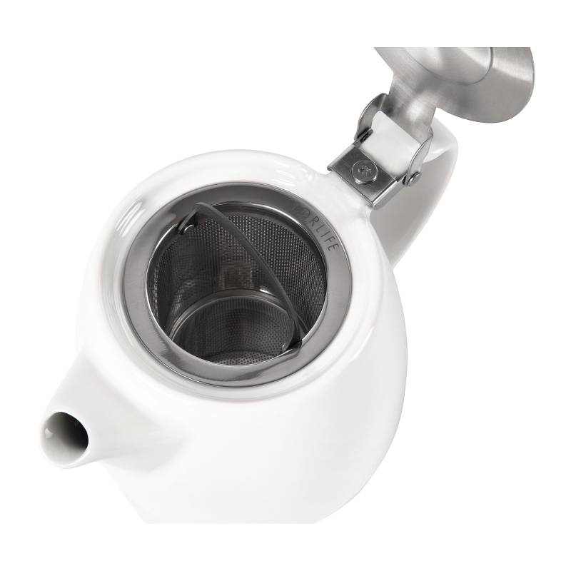 Théières empilables au design moderne attrayant; passent au lave-vaisselle. En porcelaine émaillée sans plomb. Filtre inclus.