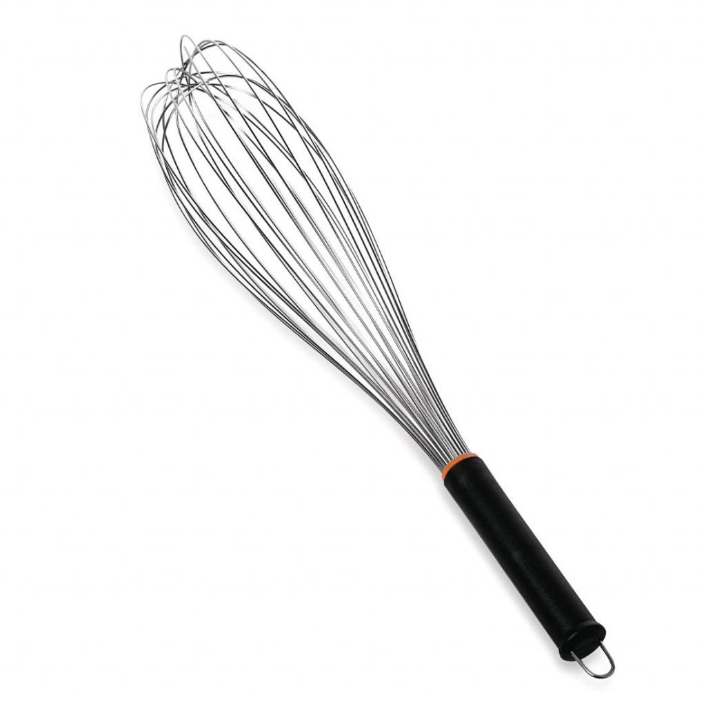 Le fouet 24 fils Schneider dispose d'un manche thermoplastique avec crochet de suspension. Très robuste, il résiste aux chocs et aux produits nettoyants, il passe donc au lave-vaisselle. Le fouet est également résistant à la chaleur jusqu'à 200 degrés Celsius. Epaisseur des fils 1,6 mm.