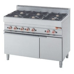 Fourneau | 6 feus vifs sur four gaz | 3,6 et 5kW | armoire neutre | 1100x650x(h)850/950mm