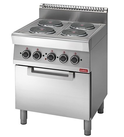 Fourneau 700 Modulaire - Électrique - 4 Brûleurs - avec Four à Air Chaud - 70x70x(h)85cm - 13,6 kW - 400V