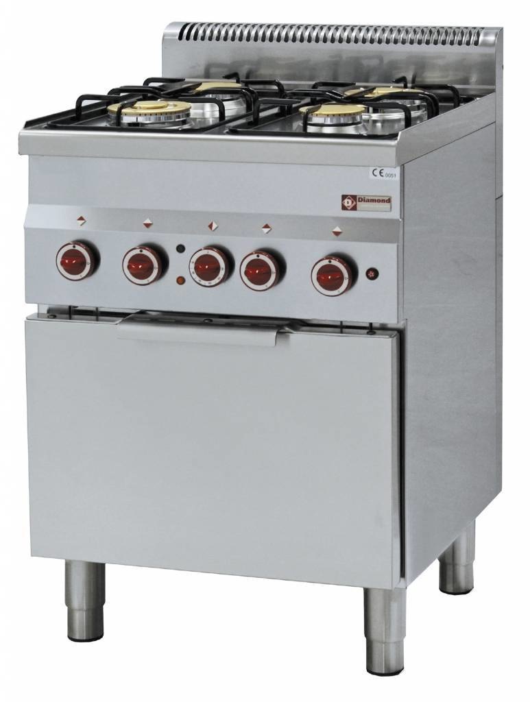 Fourneau à gaz | 4 Feux | 3,3 et 3,6kW | avec four convection électrique GN 2/3 | 600x600x(h)850/970mm