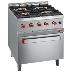 Fourneau à gaz | 4 Feux | 400V | 3,5 et 6kW | avec four électrique GN 2/1 | 700x700x(h)850/920mm