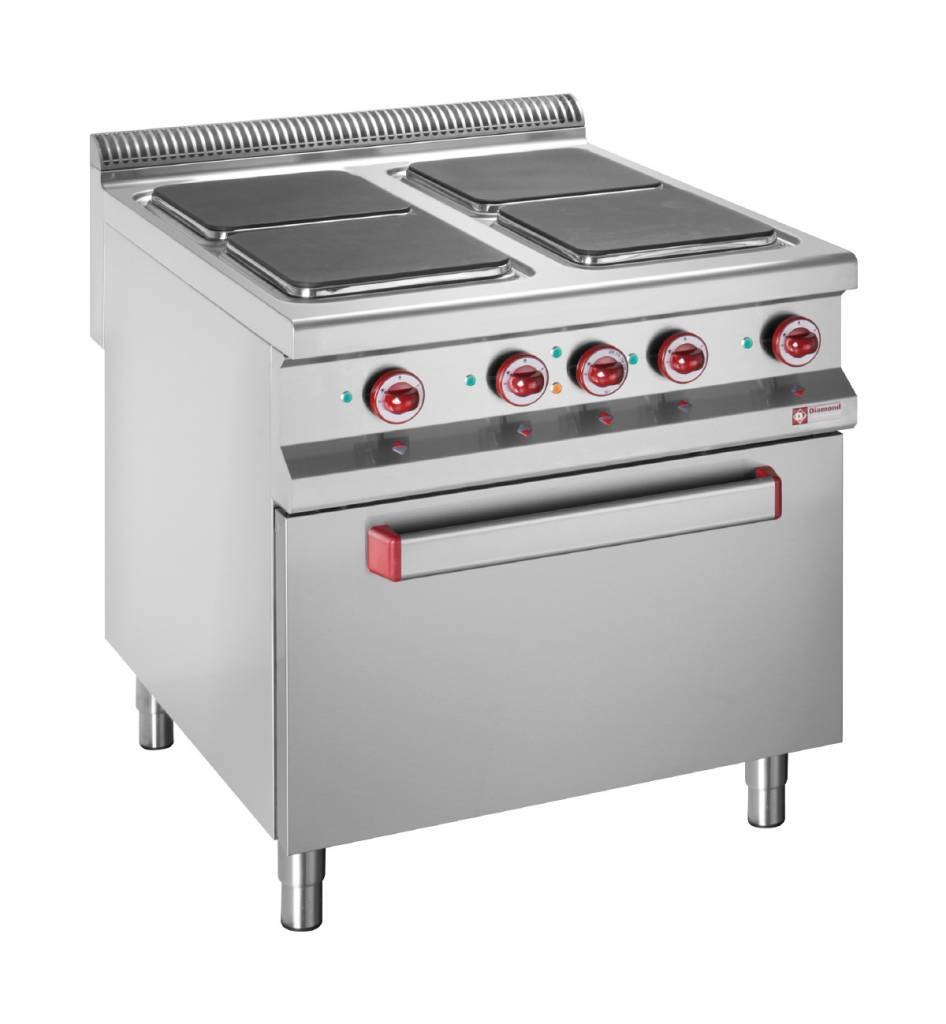 Fourneau électrique | 4 plaques carrées | 400V | 3 et 4kW | Four électrique | 800x900x(h)850/920mm