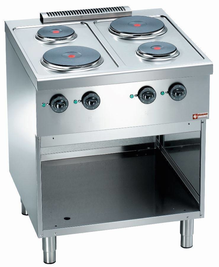 Fourneau électrique, 4 plaques rondes |sur armoire ouverte | 8.2 kW | Inox | 230/400V | 700x700x(H)850 mm