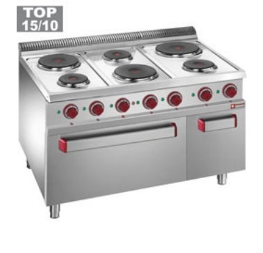 Fourneau électrique | 6 plaques rondes avec four GN 2/1 et grill électrique |armoire neutre GN 1/1 | 400V | 1,5 et 2,6kW | 1100x700x(h)850/1000mm