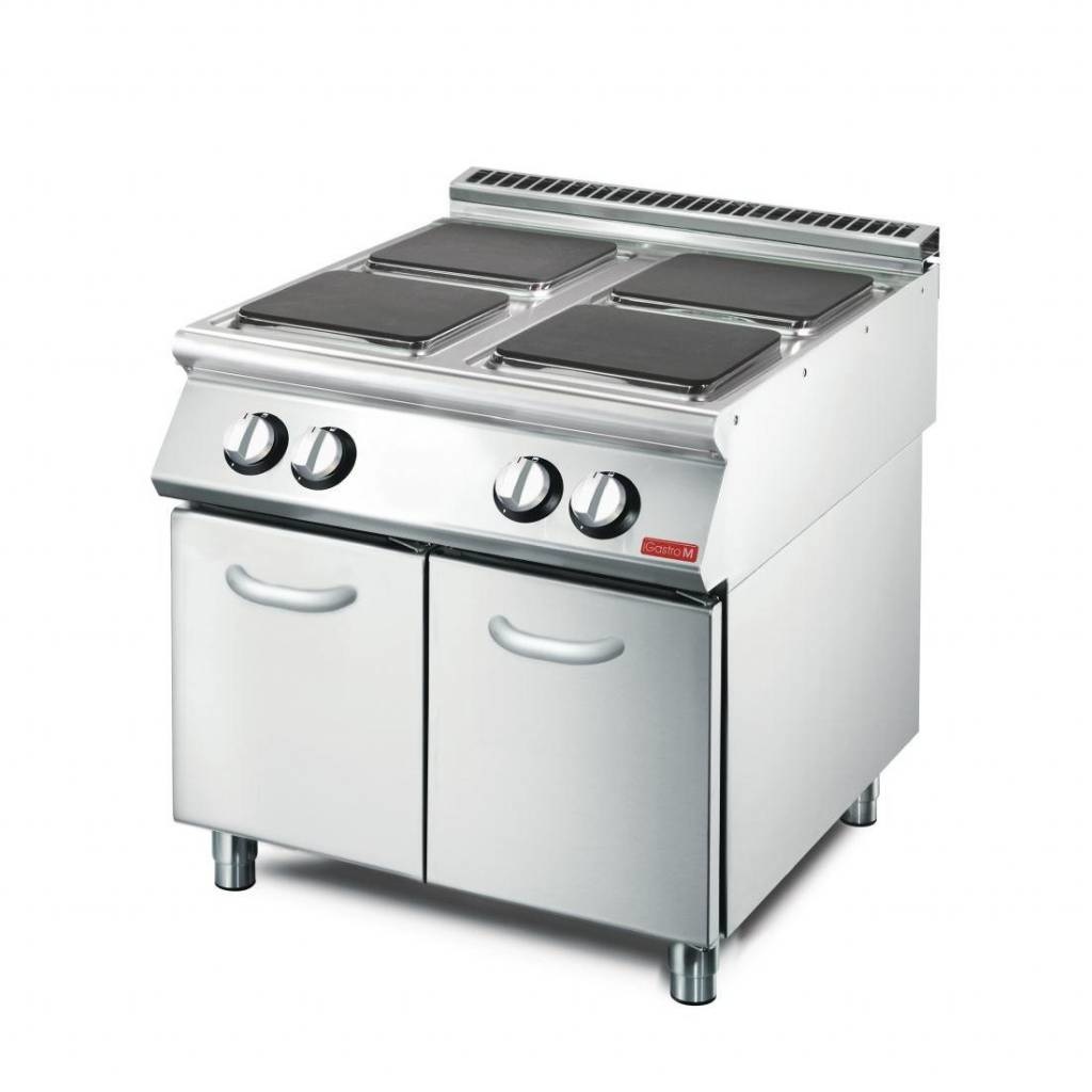 Fourneau électrique 70/80PCE Gastro M avec 4 plaques de cuisson carrées. Pieds réglables. Livré sans portes.