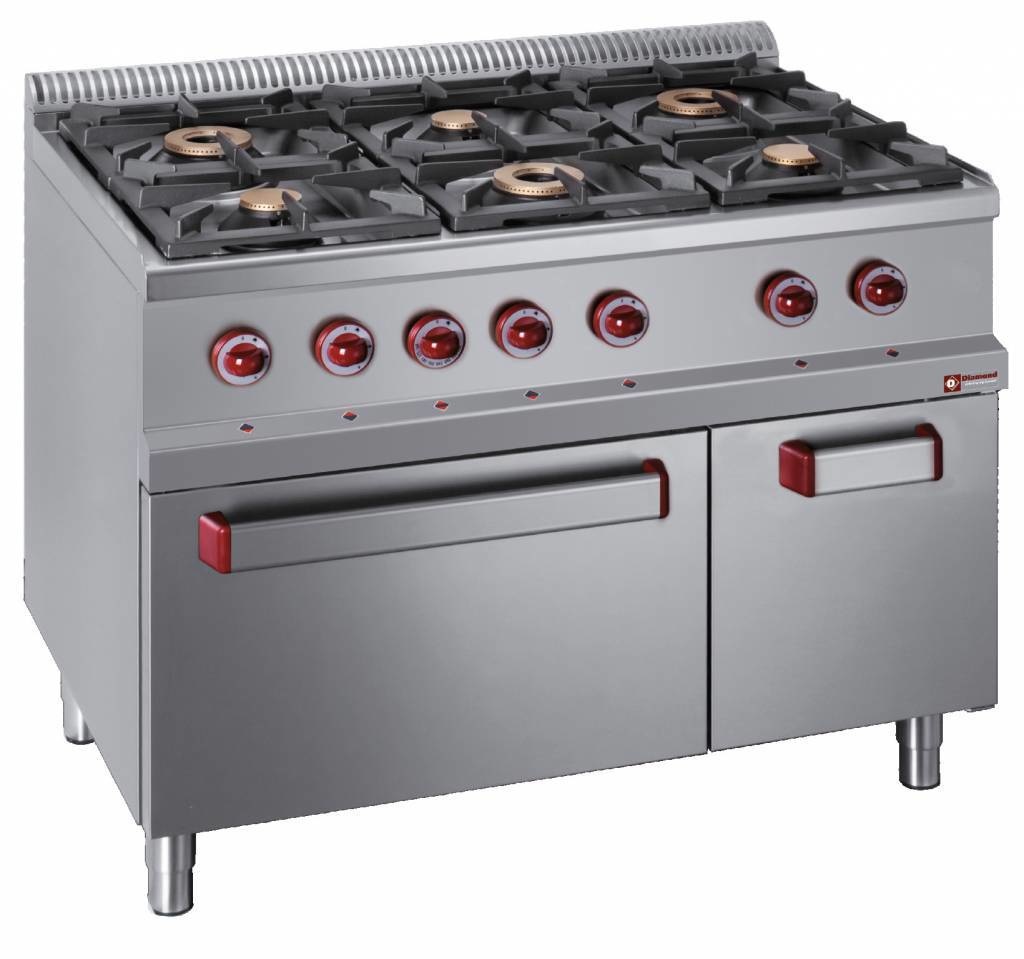 Fourneau gaz avec four gaz GN 2/1 | 6 Feux | 3,5 et 6kW | armoire neutre | 1100x700x(h)850/920mm