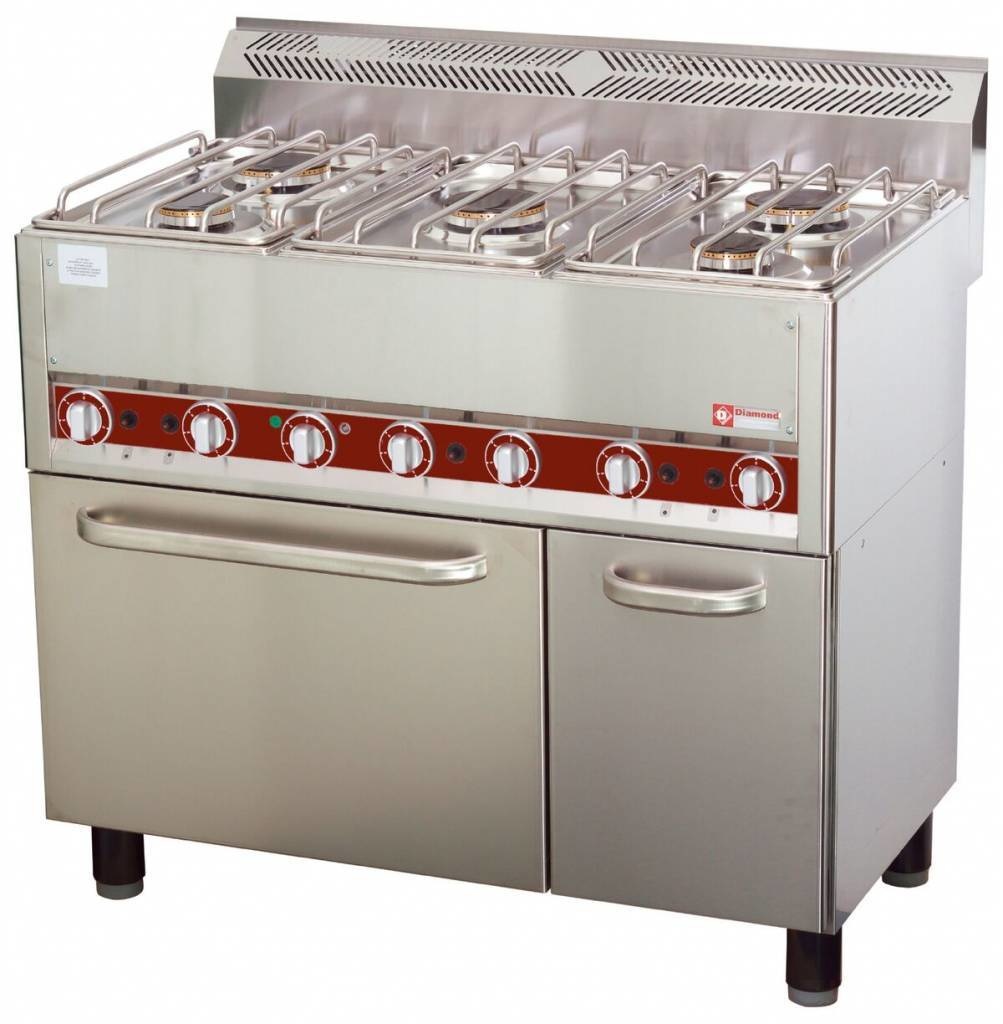 Fourneau Horeca | Gaz | 5 Feux | sur four à convection 4x GN 1/1 | 3 et 3,6kW | 990x600x(h)860mm