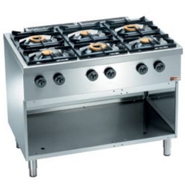 Fourneau Horeca| Gaz | 6 feux vifs 3,5 et 6kW | armoire ouverte | 1100x700x(h)850mm