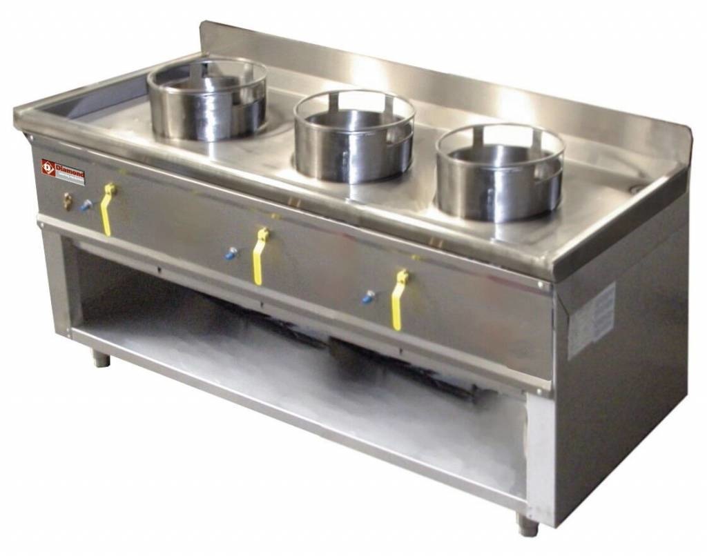 Fourneau wok 3 brûleurs armoire ouverte | 23kW
