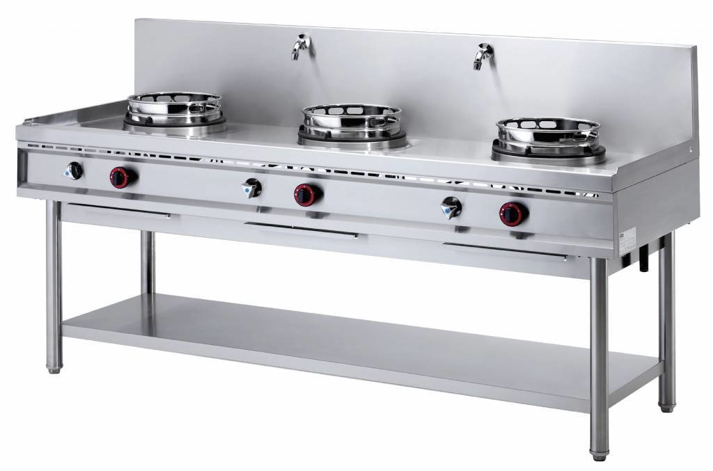 Fourneau wok 3 brûleurs avec rideau d'eau | 3 x 15kW