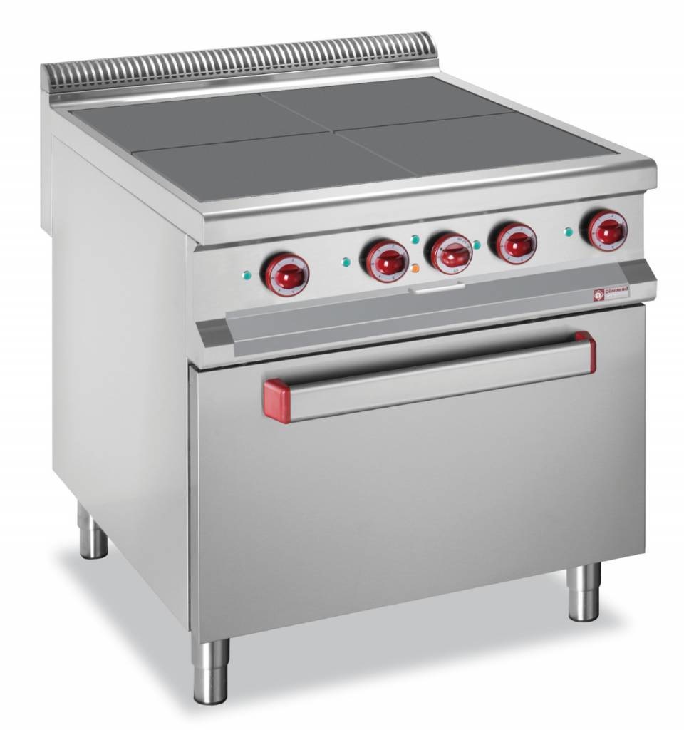 Fourneaux électriques + Four GN2/1 | Inox | 4 plaques affleurantes | 16kW | 800x900x850/920(h)mm