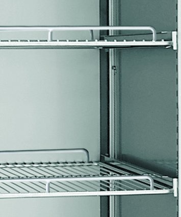 - Equipements en standard : Plan de travail isolé avec pare gouttes, 3 sections de portes avec fermeture sécurisée, 6 grilles inox, pieds marins
