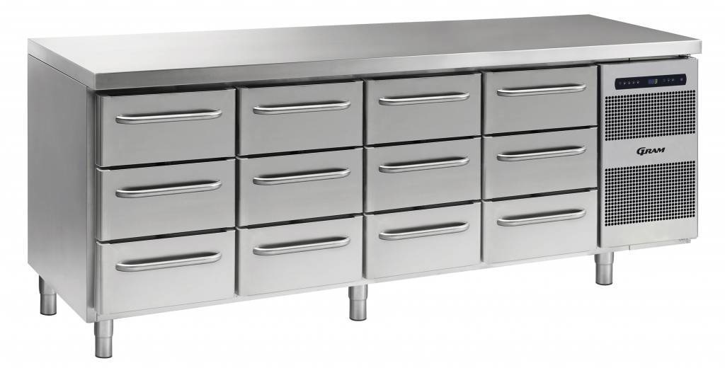 Comptoir Réfrigérateur | INOX | 4x3 Tiroirs | Gram GASTRO 07 K 2207 CSG A 3D | 3D | 3D | 3D L2 | 2163x700x885 | 950(h)mm