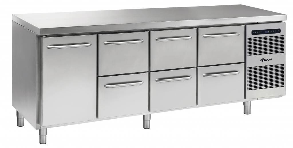 Comptoir Réfrigérateur | INOX | 1 Porte + 2+2+2 Tiroirs | Gram GASTRO 07 K 2207 CSG A DL | 2D | 2D | 2D L2 | 2163x700x885 | 950(h)mm