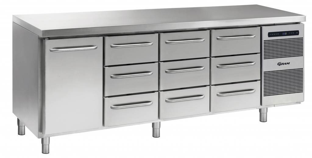 Comptoir Réfrigérateur | INOX | 1 Porte + 3+3+3 Tiroirs | Gram GASTRO 07 K 2207 CSG A DL | 3D | 3D | 3D L2 | 2163x700x885 | 950(h)mm