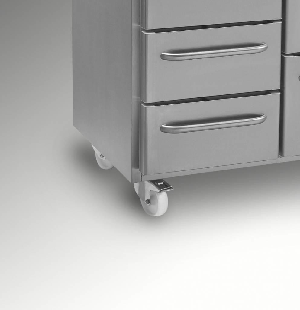 GASTRO 07 comprises of 1/1 GN counters, available with 2, 3 or 4 sections. Flat worktop or saladette worktop. Doors or drawers, with of withour lock.