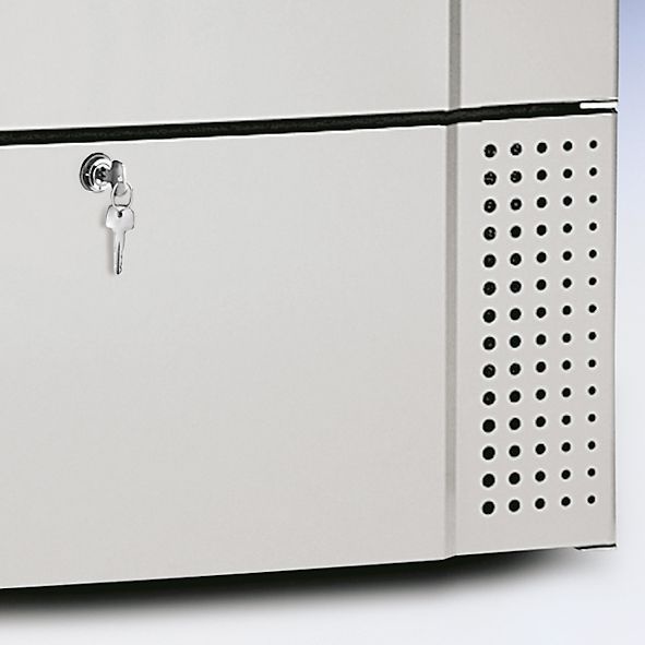- Equipements en standard Porte ferrée à droite réversible avec serrure et un rappel de fermeture de porte, sol isolé avec réchauffage avec revêtement inox et rampe d'accès 100 mm