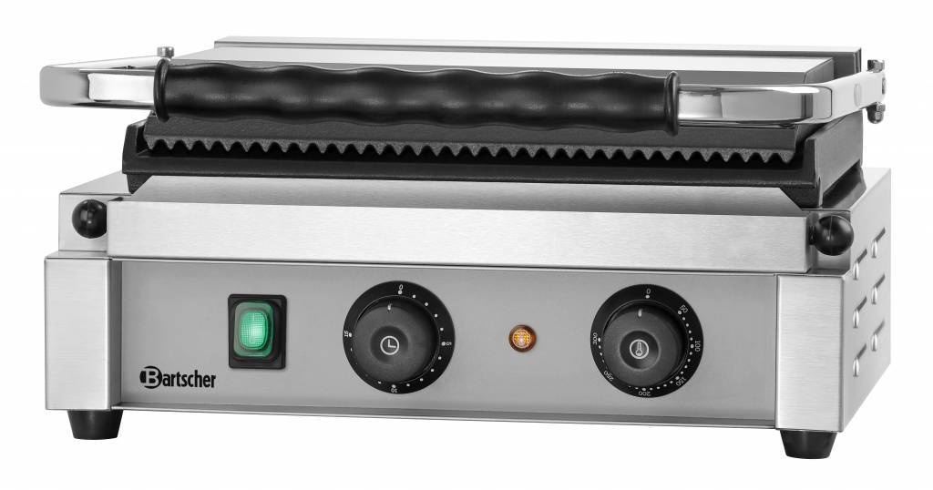 Grill Contact Panini-T | Lisse/Rainuré | Fonte Emaillé | 2,2 kW | 410x400x(H)200mm