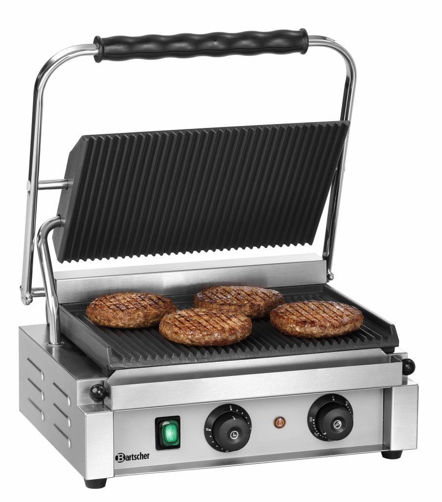 Gril de contact puissant avec grande surface de gril et minuterie intégrée - La construction solide avec des plaques de gril en fonte assure un traitement bon et propre des aliments.