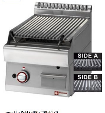 Grill pierre de lave gaz inox | 1/2 module, grille de cuisson en "Z" | 400x700x280(h)mm