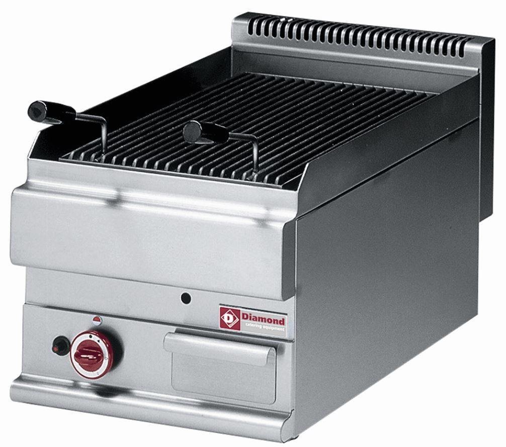 Grill pierre de lave gaz inox | Top | grille de cuisson en fonte | 40x65x(h)28/38cm | 4.8kW