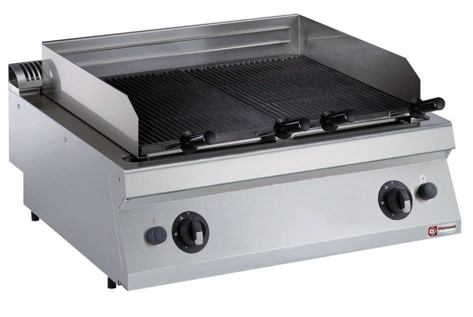 Grill pierre de lave gaz inox | Top | grille en fonte 1 mod. 730x540mm | 800x700x250/320(h)mm