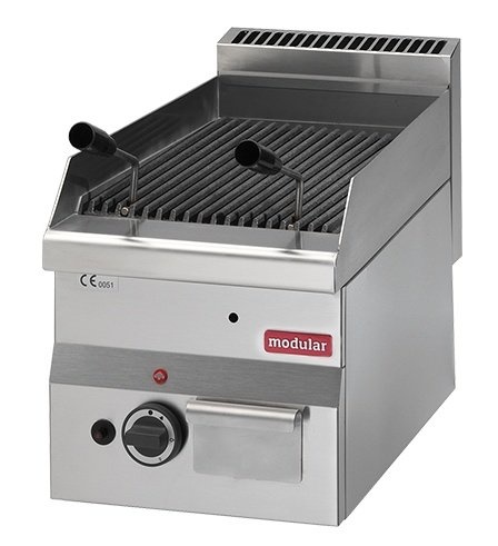Grill Pierre de Lave INOX 600 Modulaire Gaz - Modèle Table - avec Grille en Fonte - 30x60x(h)28cm - 5.5KW