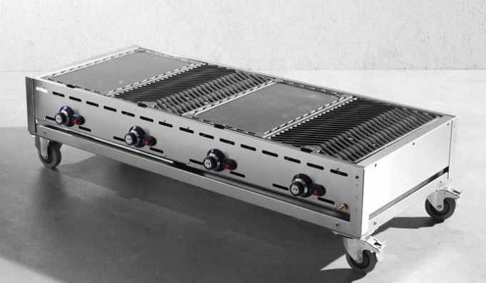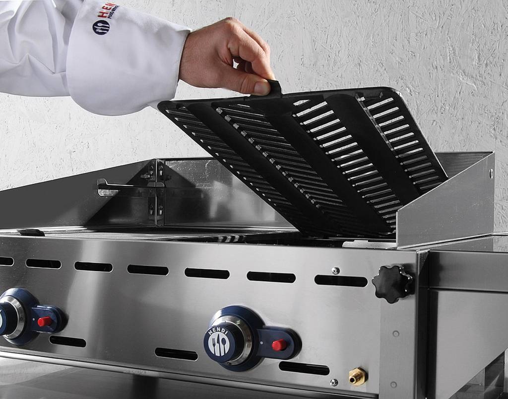 Grille en inox surélevée pour garder au chaud les sauces et plats préparés.