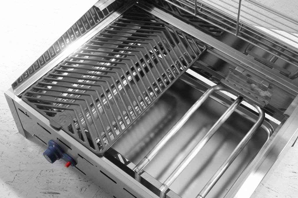 Grille en inox surélevée pour garder au chaud les sauces et plats préparés.