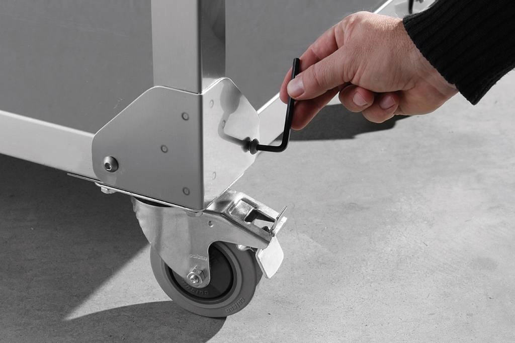 Pieds démontables. - Livré avec 2 plaques en fonte émaillée et 2 grilles gastronorme 1/1.