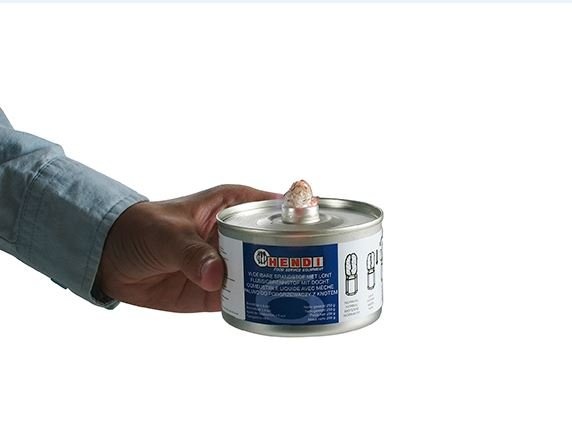 Hendi vend ce liquide dans des boîtes métalliques fermées non-rechargeable de 145 et 200 g et livres également une boîte en aluminium de 198 g sous le marque Blaze. La mèche ajustable en hauteur peut régler l’intensité de la flamme.