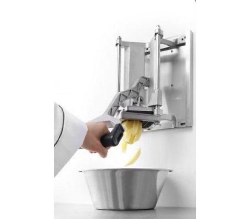 Avec ce coupe-frites vous pouvez faire des frites à 4 manières différentes. Ce coupe-frites a été réalisé en aluminium. Il peut être fixé au mur ou sur plan de travail de votre cuisine. Cet appareil est approprié pour insérer des pommes de terre entières et couper-les facilement.
