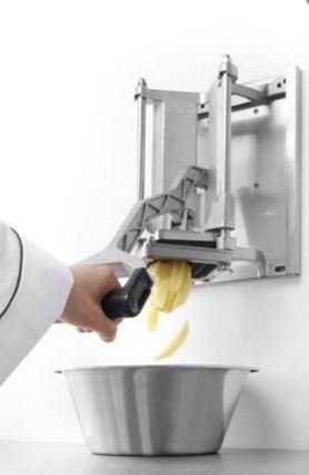Avec ce coupe-frites vous pouvez faire des frites à 4 manières différentes. Ce coupe-frites a été réalisé en aluminium. Il peut être fixé au mur ou sur plan de travail de votre cuisine. Cet appareil est approprié pour insérer des pommes de terre entières et couper-les facilement.