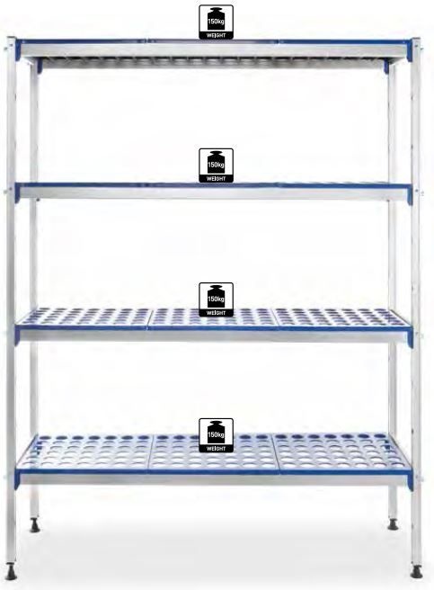 Étagère Aluminium 4 Niveaux | max.150kg | à Monter | 1280x405x(H)1685mm