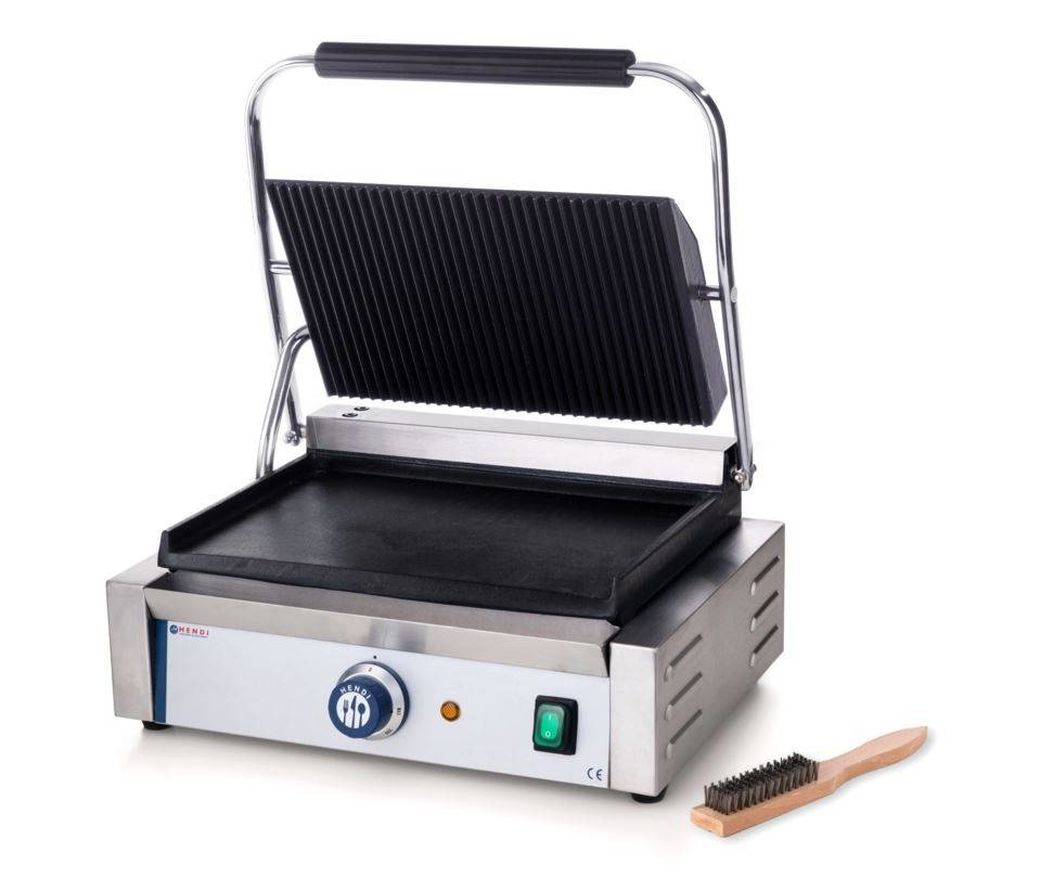 Grill de Contact "Panini" | Dessus Rainuré/Dessous Lisse | 2200W