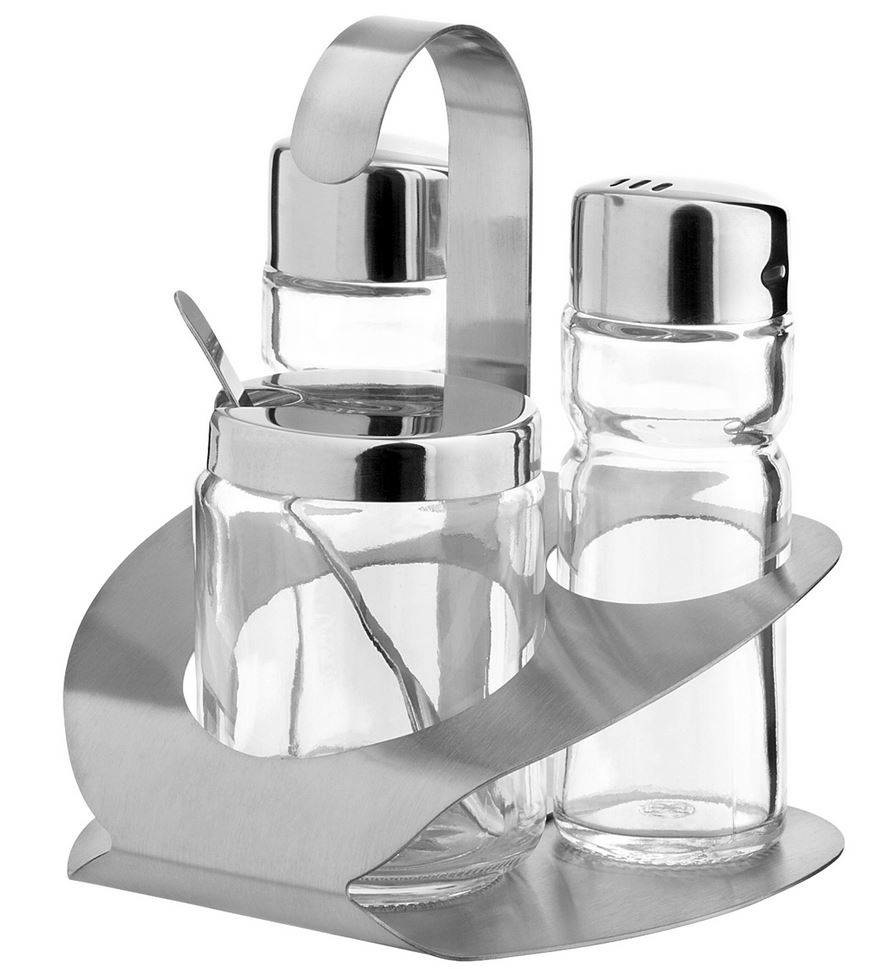 Ménagère Inox - Set de 3 Pièces: Poivre, Sel, Moutarde - 100x95x115(h)mm