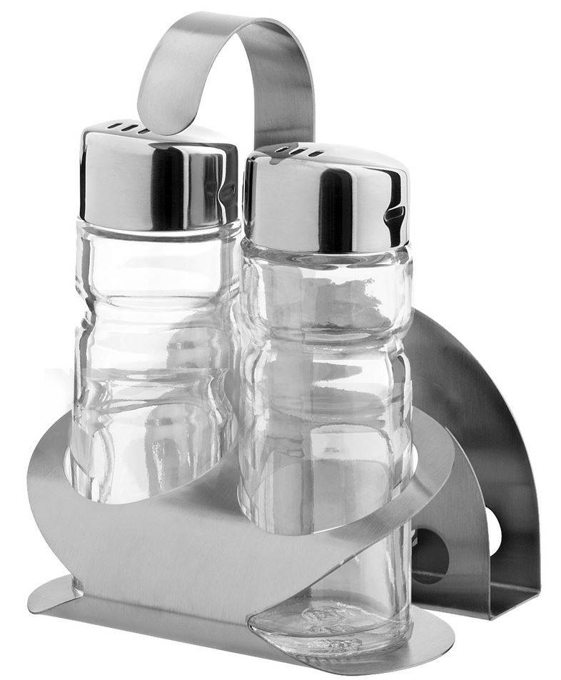 Ménagère Inox - Set de 3 Pièces: Poivre, Sel, Porte-Serviettes - 85x75x115(h)mm