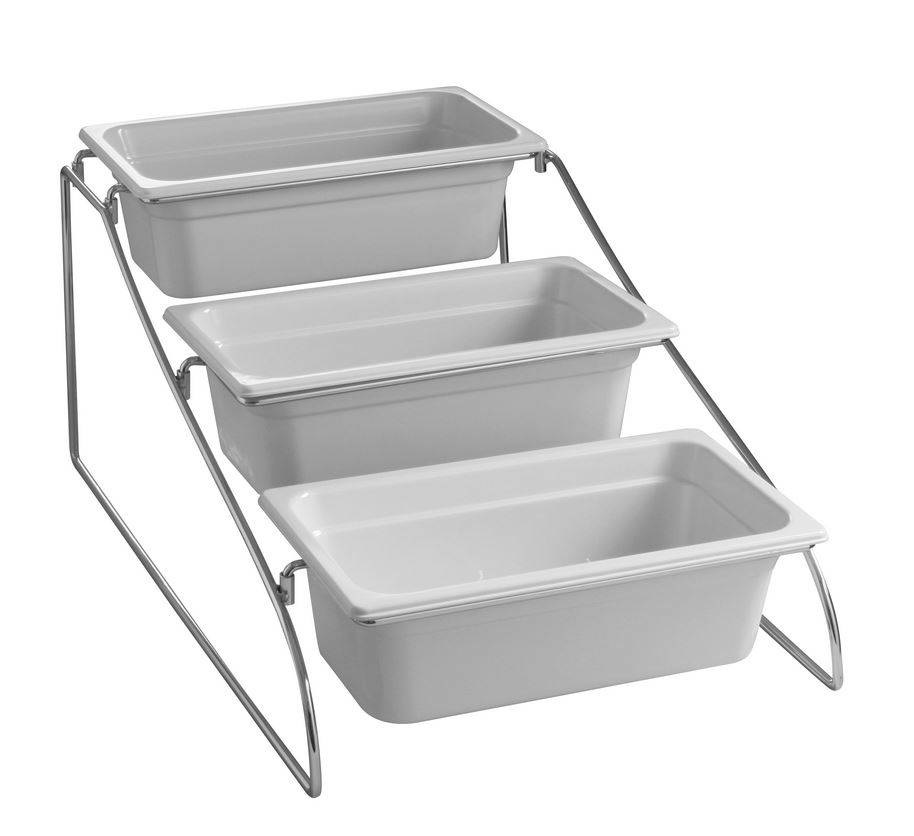 Support de Présentation Inox + Bacs Mélamine - 3x GN1/3
