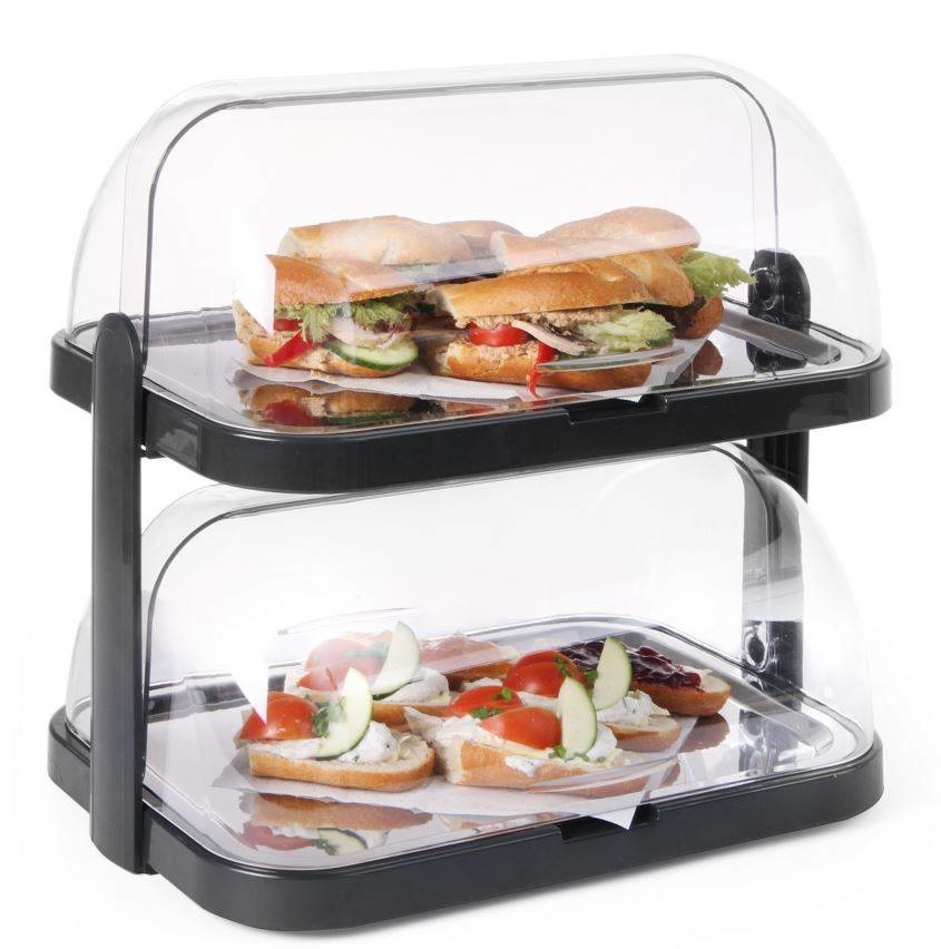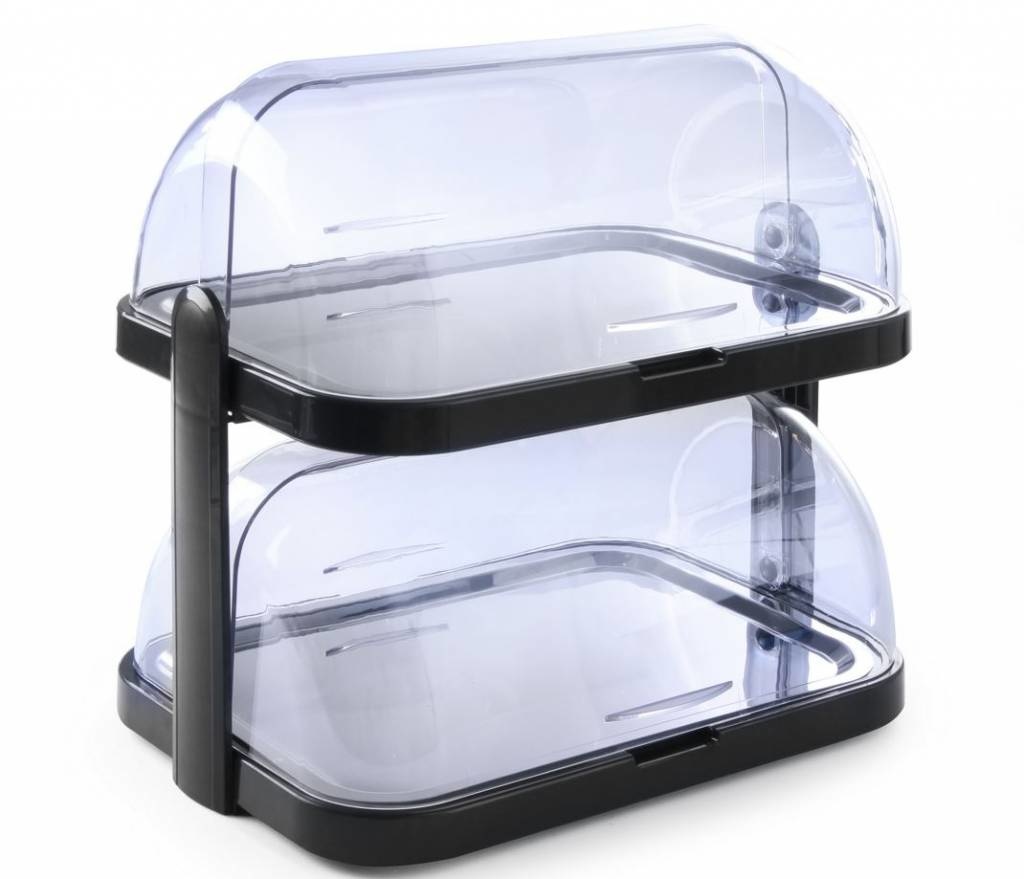 Vitrine à Couvercle Coulissant ABS - Deux Plateaux - 440x320x440(h)mm