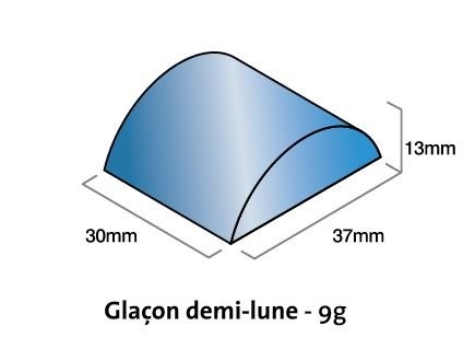 Cette machine produit des glaçons en forme demi-lune : 30x37x13 (h)mm et 9gr.
