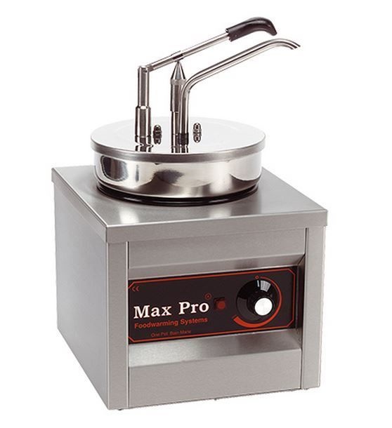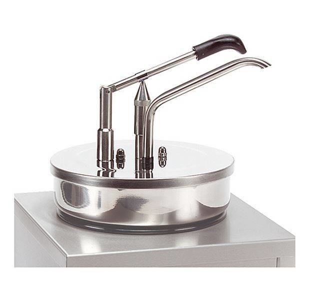 inox 18/8, chauffage à bain marie, le couvercle fermé prévient une perte d'humidité et maintient ainsi la liquidité de la sauce, dispenser réglable jusqu'à 90°C avec thermostat et témoin lumineux