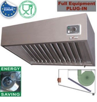 3 filtres ANTIGRAISSE à labyrinthes (2x 400x500 & 1x 500x500) Version avec turbine centrifuge "étanche" (IP55) incorporée, à basse consommation énergétique " Energy Saving "